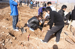 ,金年会jinnianhuicom 11级社体的同学在团委书记李春海和班主任时传霞的带领下在金年会诚信信誉至上西校区南院开展了植树活动。