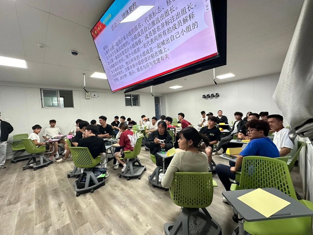 本次体验式党课分为集体意识、榜样引领、爱党爱国、强国有我四个单元。集体意识单元,通过因党结缘、我们的约定、红星在我心三个活动,进行分组合作,设计本小组的组名、代表标志、标语、契约等,增强团队凝聚力。榜样引领单元通过榜样的力量、我心中的英雄等活动,进行中国共产党人的精神谱系和英雄故事学习分享,重温党的光辉历程,缅怀革命先烈。爱党爱国单元通过知识抢答活动,使参与学生了解关于党的基本知识,提高对于党的认识。强国有我单元通过手绘中国活动,学生根据对中国未来社会发展的预期和畅想,以小组为单位自由创作一幅题为《25年后的中国》画作。