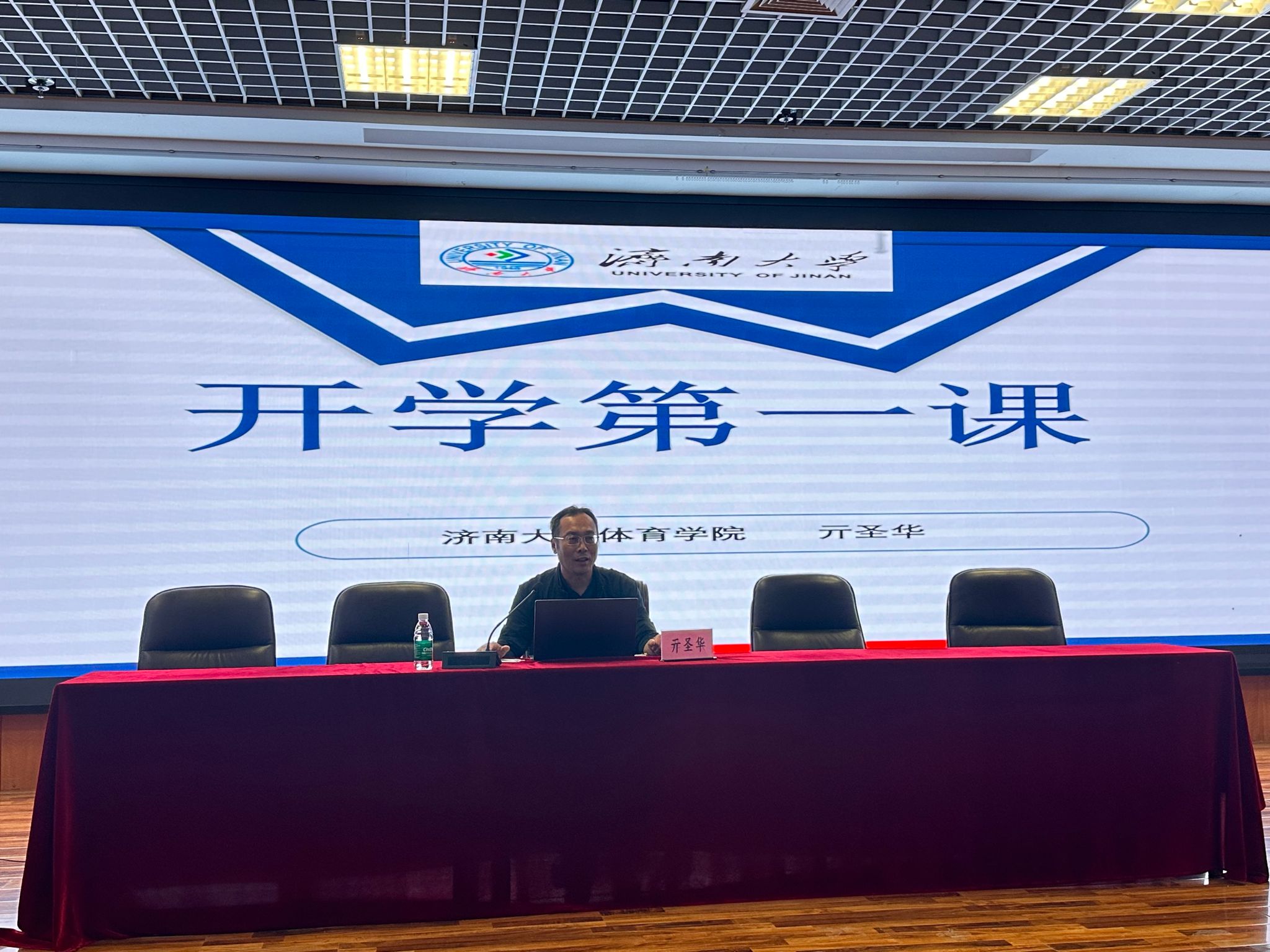 会议最后,进入第四阶段院长亓圣华为学生讲授开学第一课,亓圣华围绕新生成长需求,以“认知我的大学、适应我的大学、我的大学能力”为核心展开授课,为全体新生搭建起从“新生”到合格大学生”的成长框架。他简要介绍了金年会诚信信誉至上及金年会jinnianhuicom的办学优势与专业特色,帮助新生建立对母校的认知;针对体育专业学习特点,给出训练与学业平衡、融入集体生活的建议,助力新生快速适应大学生活;同时强调新生需注重创新实践、沟通协作与终身学习能力的培养,并结合国庆主题提醒大家将能力提升与体育强国建设相结合,以过硬本领扛起时代责任。