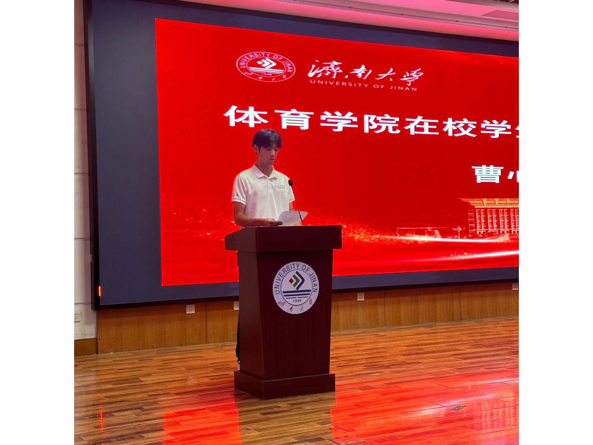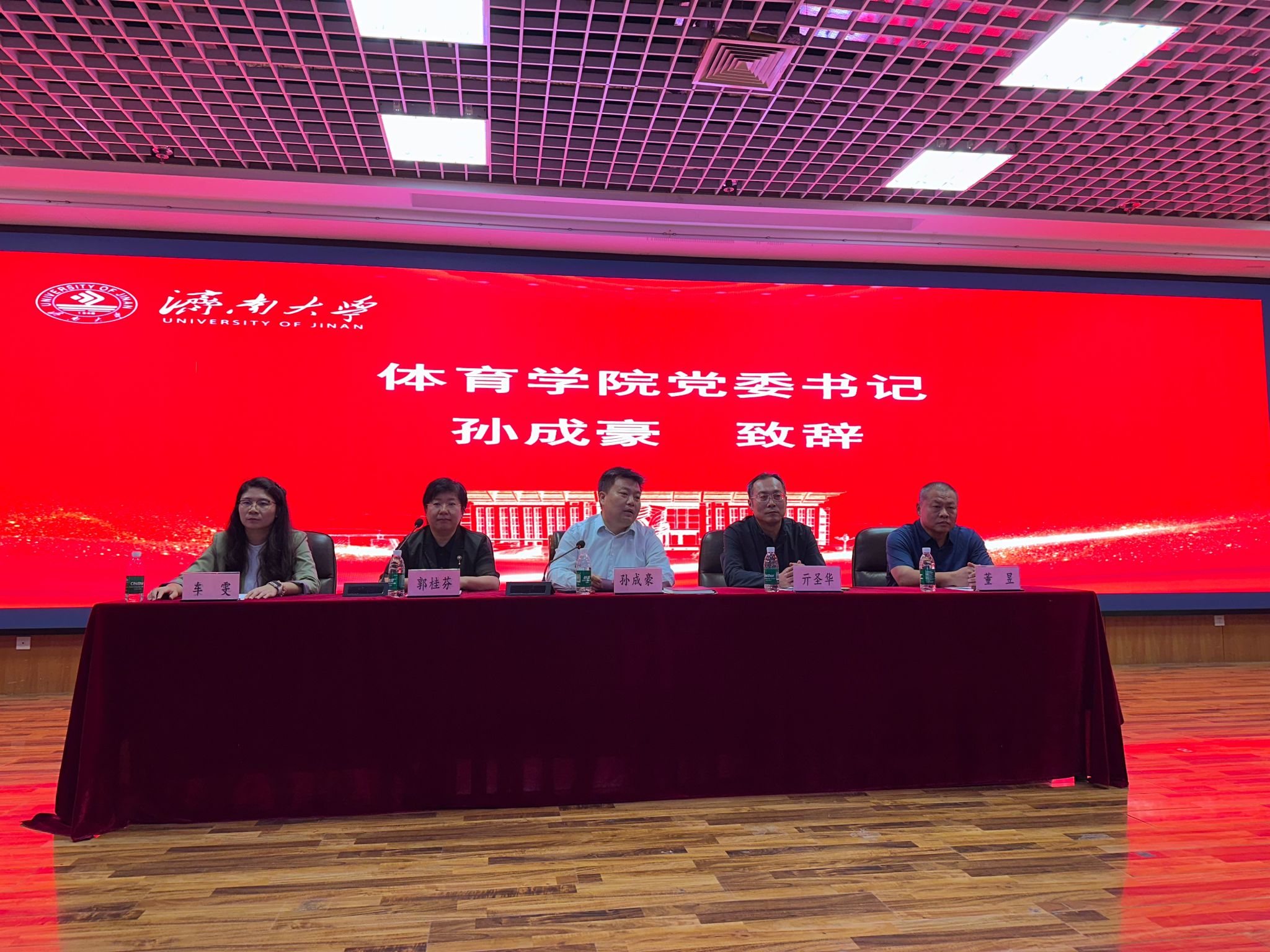 学院党委书记孙成豪发表致辞。他首先代表学院对2025级新生的到来表示热烈欢迎,并结合自身28年济大人经历,分享了见证济大从起步到壮大的历程,让新生们更直观地感受到学校的发展底蕴与体育人的使命担当。他向新生提出四点嘱托:一是坚守理想,锚定“为国争光”,将个人成长与体育强国建设紧密结合,把“为国争光”的信念融入专业学习与未来发展,以远大志向指引青春方向;二是勤学善思,筑牢本领根基,既要刻苦打磨运动技能,也要扎实学习体育理论知识,关注体育科技前沿动态,做到理论与实践相互促进,练就过硬专业本领;三是直面挑战,不惧失败挫折,体育之路难免遇到训练瓶颈、比赛失利,要学会从失败中总结经验、调整心态,把每一次挫折都转化为成长的动力,以坚韧意志攻克难关;四是珍惜资源,主动请教榜样,学院拥有优秀的师资团队、经验丰富的学长学姐与完善的训练设施,要主动向老师请教专业难题,向优秀校友、学长学习成长经验,充分利用身边资源加速自身成长,展现济大学子积极进取的风采。