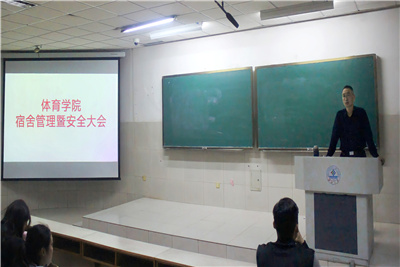 王老师在发言中表示,宿舍管理是学生管理工作中重要的工作之一。做好宿舍管理工作,是强化学生自我教育、自我管理、自我约束能力的基本体现。他要求,禁止在宿舍私拉乱接电线,禁止在宿舍存放易燃、易爆、腐蚀性物品,禁止在宿舍内吸烟。他强调,切实增强学生的宿舍安全意识,自觉遵守学校宿舍有关管理规定,彻底消除宿舍安全隐患是当前做好学生管理工作的第一步。要求各位宿舍长们发挥自身的带头作用,宣扬先进积极的思想,正确引导室友,营造出热爱学习、热爱宿舍,团结一致的良好氛围。同时表扬了在学校卫生大检查中的优秀宿舍,代表学院向每个宿舍发放了卫生清洁工具及用品,并指出,希望受表彰的寝室能够珍惜荣誉,戒骄戒躁,再接再厉,在宿舍内共同营造良好的学习风气、和谐的人际关系和干净整洁的卫生环境。今后,学院将继续加强以优秀寝室评比为载体的优秀宿舍创建工作,开展一系列的宿舍文化活动,进一步增强学生们的集体荣誉感和凝聚力,引导广大学生共同创建良好的学习、生活环境,倡导“我的安全我负责、他人安全我有责,学校安全我尽责”安全口号,努力实现学院全年无安全问题的目标。