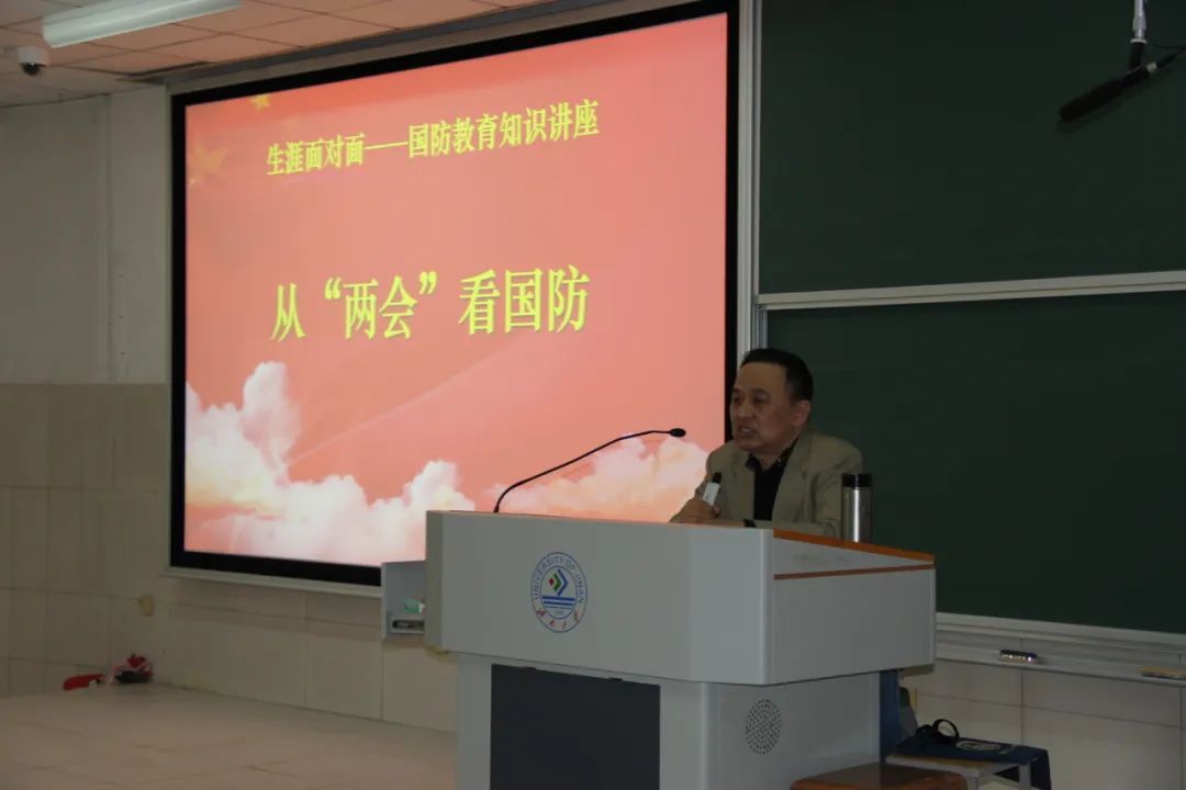 为增进和培育大学生全民国防意识和观念,提高其国防素养。3月22日下午,金年会jinnianhuicom在2教104举办生涯面对面——国防教育知识讲座,本次讲座邀请到了山东省政协委员、原空军某部政治部副主任郝立伟大校为全院师生进行国防教育知识讲座,金年会jinnianhuicom党委书记孙成豪、党委副书记、副院长郭桂芬,校学生工作部(处)人武科科长李英武、学院辅导员老师以及2023级全体学生共200余人参加了讲座,会议由学院党委书记孙成豪主持。