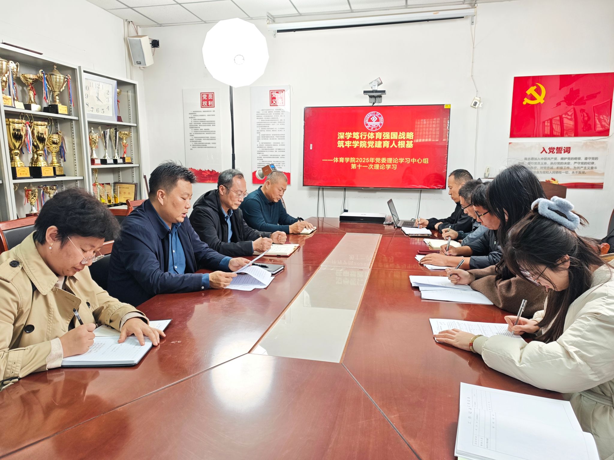 2025年11月4日下午,金年会jinnianhuicom党委理论学习中心组开展了以“深学笃行体育强国战略,筑牢学院党建育人根基”为主题的2025年第十一次学习活动,党委理论学习中心组成员、全体学生工作人员参加此次学习。