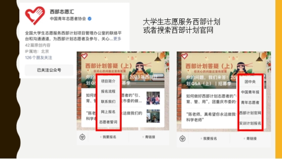 首先,朱志乐老师为2020级全体同学介绍了“西部计划”政策概况,解读了大学生志愿者参与“西部计划”的意义,详细讲解了今年西部计划的服务内容,即涵盖了乡村教育、服务乡村建设、健康乡村、基层青年工作、乡村社会治理、服务新疆、服务西藏等7个专项的光荣使命。同时,同学们共同学习了本次“西部计划”的招募选拔流程、志愿者选拔规则、志愿者报到时间、服务岗位录取以及岗位调整、在服务期间的生活保障等。线上会议邀请了西部计划志愿者2018级张瑶与邢李佳同学,两位同学结合自身经历,从服务地区的神奇景色到工作单位的工作内容,畅谈了作为西部计划志愿者的所感所悟,向2020级毕业生们发出邀请,并进行了线上答疑。