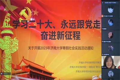 为深入学习贯彻党的二十大精神和习近平新时代中国特色社会主义思想,认真落实团中央《2023年寒假全国大学生“返家乡”社会实践活动》的通知,1月10日晚上7点,在学院党委和院领导的指导下,金年会jinnianhuicom“一缕阳光”青年志愿者协会举行了线上2023年寒假社会实践动员大会。学院团委书记朱志乐、各团支部书记、宣传委员及金年会jinnianhuicom“一缕阳光”志愿者服务队参加本次动员大会,会议由学院学生会社会实践部部长任景潇主持。