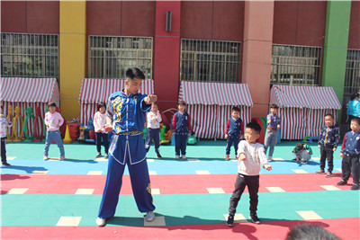 进入金年会诚信信誉至上附属幼儿园后,园长向老师和同学们介绍了幼儿园孩子们的情况和注意事项,志愿者们纷纷表示将会以最大限度的调动孩子们的积极性并树立他们的自信心。他们与孩子们聊天、玩耍,并为孩子们献上了精彩的武术表演,高难度的武术动作赢得了孩子们的喝彩和掌声。他们手把手的教给孩子们简单的武术动作,在教授孩子们武术动作的同时也让孩子们了解到中国传统武术,引导孩子们初步接触和了解了中华武术传统文化,一方面可以使孩子们从小培养出以爱国主义为核心的尚武精神和武德情操;另一方面也可以加强学生们的安全防护教育,增强孩子们强身健体的意识,提高了锻炼身体的积极性,强身健体的同时还能培养孩子们的坚强意志品质,塑造完美的人格。